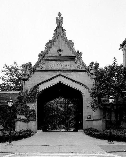Entry gate to the University of Chicago Illinois White Modern Wood Framed Art Print with Double Matting by Highsmith, Carol