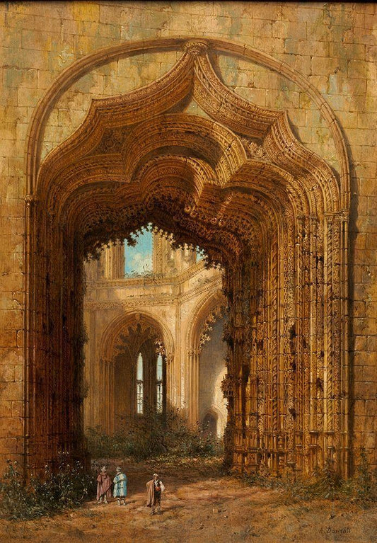 Ruined Church White Modern Wood Framed Art Print with Double Matting by Dauzats, Adrien