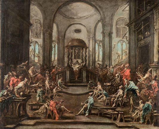 Interior of a Synagogue White Modern Wood Framed Art Print with Double Matting by Magnasco, Alessandro