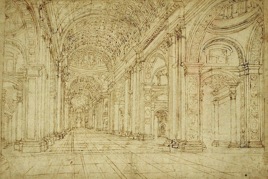 Interior of Saint Peters Basilica, 17th century White Modern Wood Framed Art Print with Double Matting by Unknown