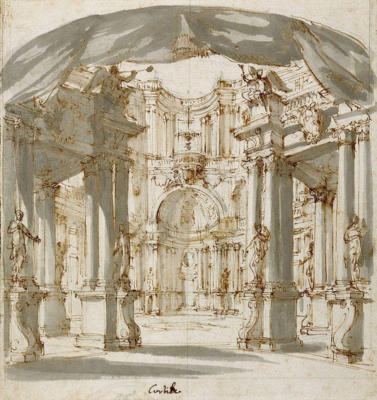 The Courtyard of a Palace: Project for a Stage, 1713 White Modern Wood Framed Art Print with Double Matting by Juvarra, Filippo