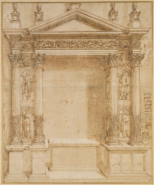 Design for an Altar, ca. 1527 White Modern Wood Framed Art Print with Double Matting by Peruzzi, Baldassare
