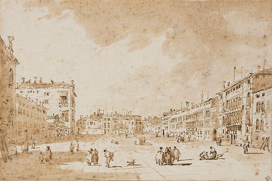 View of Campo San Polo, Venice, ca. 1790 White Modern Wood Framed Art Print with Double Matting by Guardi, Francesco