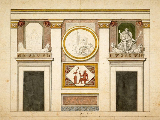 Unexecuted elevation for the Stanza Egizia at the Villa Borghese, ca. 1770-1793 White Modern Wood Framed Art Print with Double Matting by Conca, Tommaso