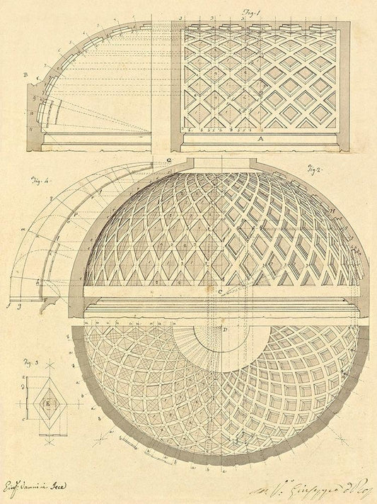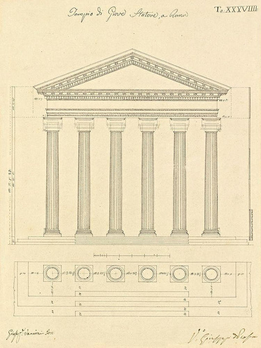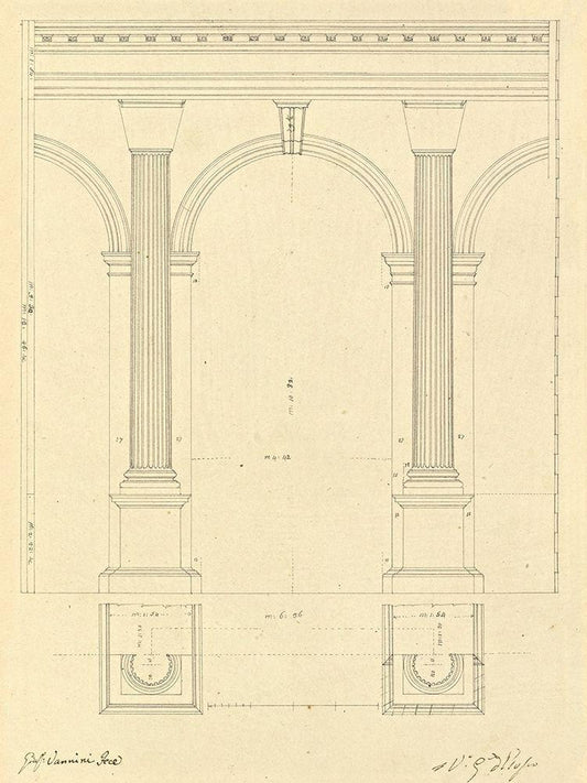 Plate 38 for Elements of Civil Architecture, ca. 1818-1850 White Modern Wood Framed Art Print with Double Matting by Vannini, Giuseppe