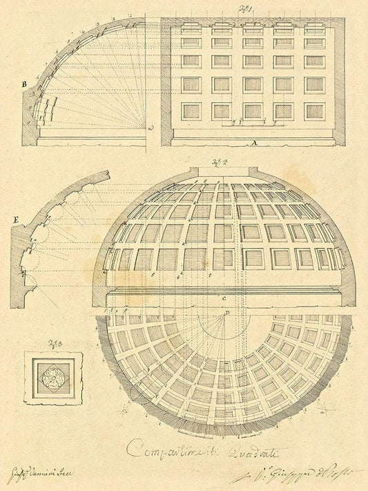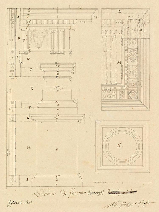 Plate 42 for Elements of Civil Architecture, ca. 1818-1850 White Modern Wood Framed Art Print with Double Matting by Vannini, Giuseppe