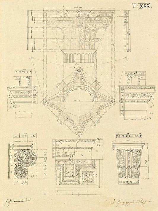 Plate 30 for Elements of Civil Architecture, ca. 1818-1850 White Modern Wood Framed Art Print with Double Matting by Vannini, Giuseppe