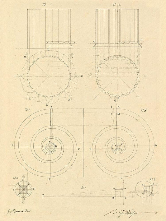 Plate 6 for Elements of Civil Architecture, ca. 1818-1850 White Modern Wood Framed Art Print with Double Matting by Vannini, Giuseppe