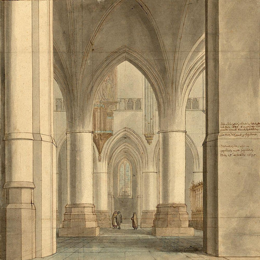 Interior of a Gothic Church, 1629 White Modern Wood Framed Art Print with Double Matting by Juvenal, Paul the Elder