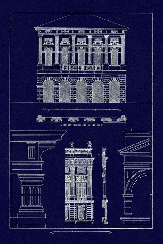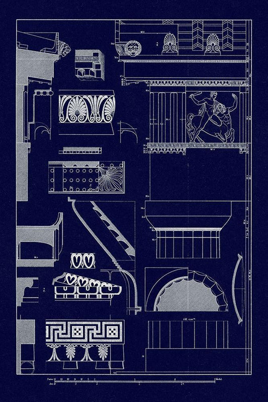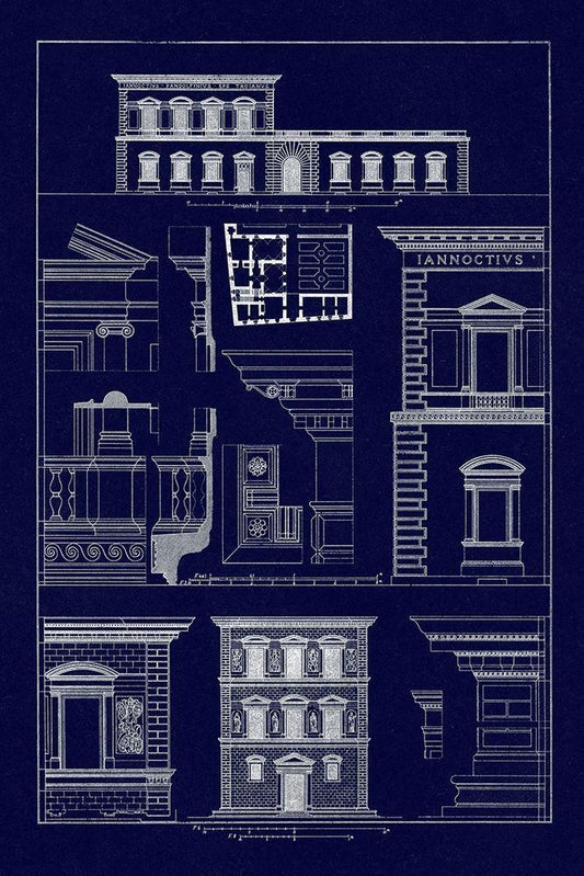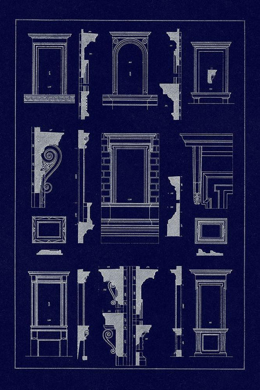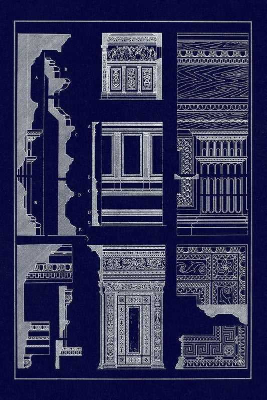 Entablatures, Terracottas and Cymas (Blueprint) White Modern Wood Framed Art Print with Double Matting by Buhlmann, J.
