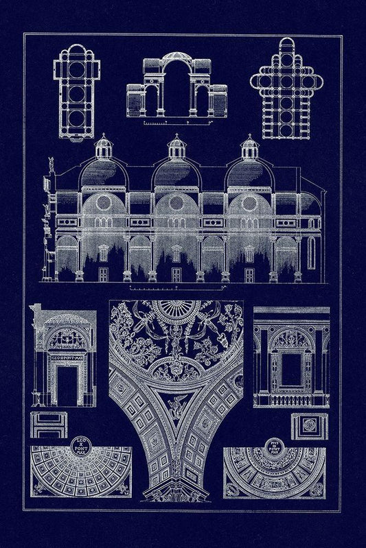 Barrel Vaults of the Renaissance (Blueprint) White Modern Wood Framed Art Print with Double Matting by Buhlmann, J.
