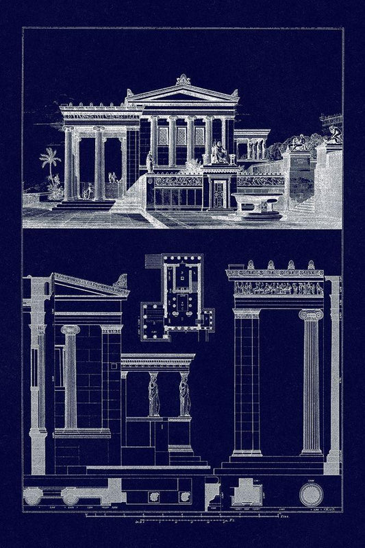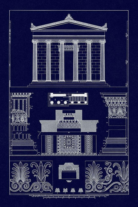 Details of Parthenon at Athens (Blueprint) White Modern Wood Framed Art Print with Double Matting by Buhlmann, J.