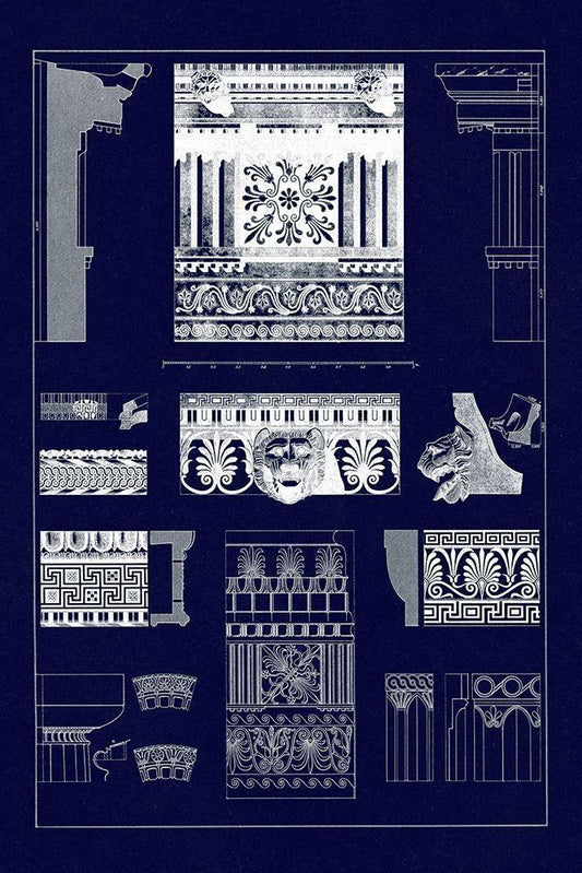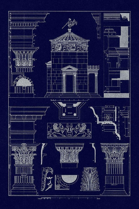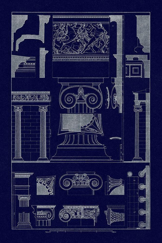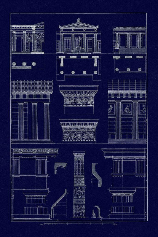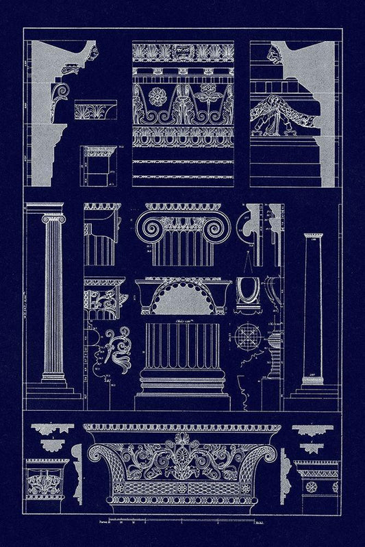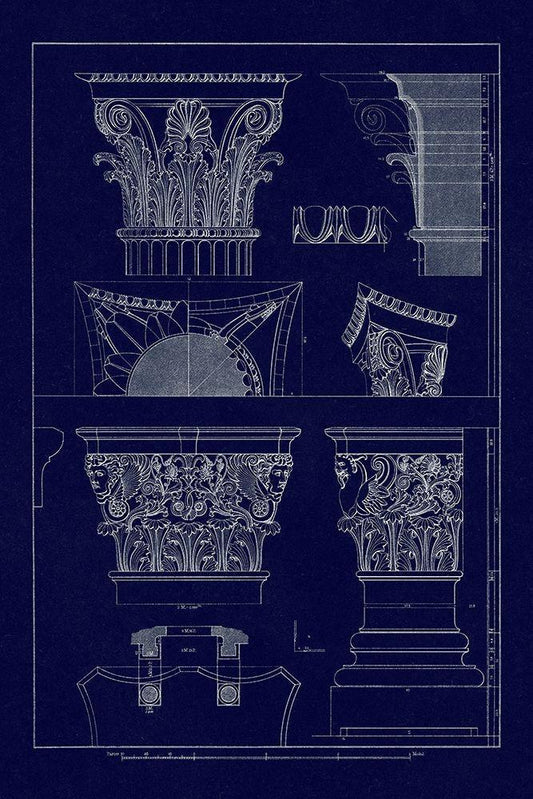 Entablatures and Capitals (Blueprint) White Modern Wood Framed Art Print with Double Matting by Buhlmann, J.