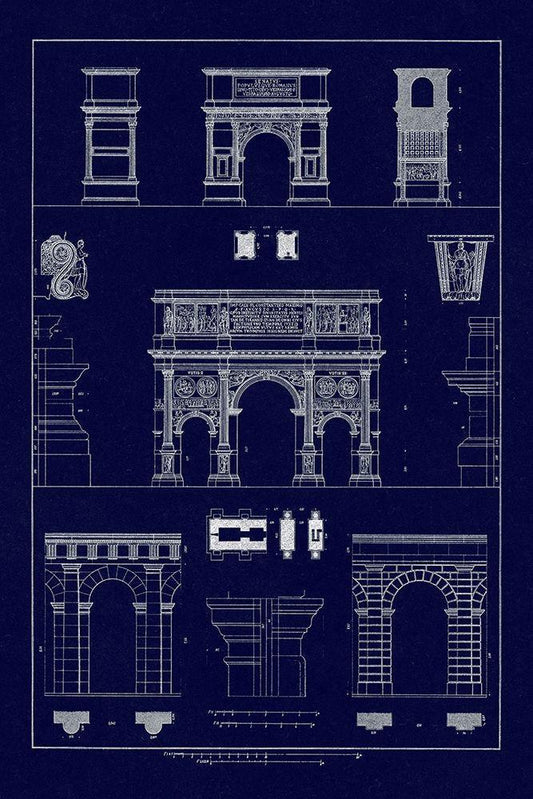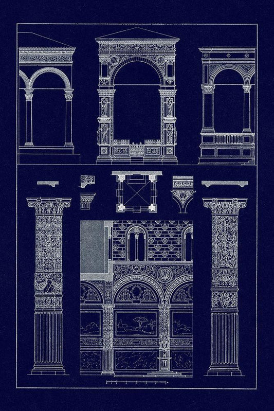 Arches and Arcades (Blueprint) White Modern Wood Framed Art Print with Double Matting by Buhlmann, J.