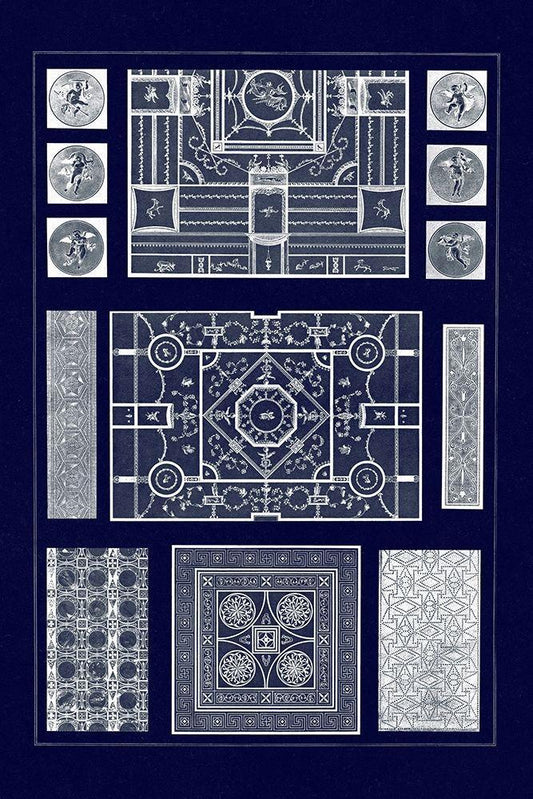 Painted Ceilings and Pavements from Pompeii (Blueprint) White Modern Wood Framed Art Print with Double Matting by Buhlmann, J.