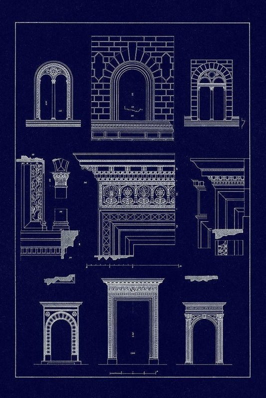 Windows and Doorways of the Renaissance (Blueprint) White Modern Wood Framed Art Print with Double Matting by Buhlmann, J.