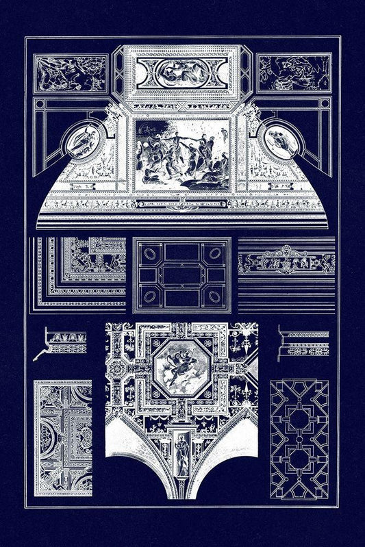 Covered Ceiling, Hotel de Villa (Blueprint) White Modern Wood Framed Art Print with Double Matting by Buhlmann, J.