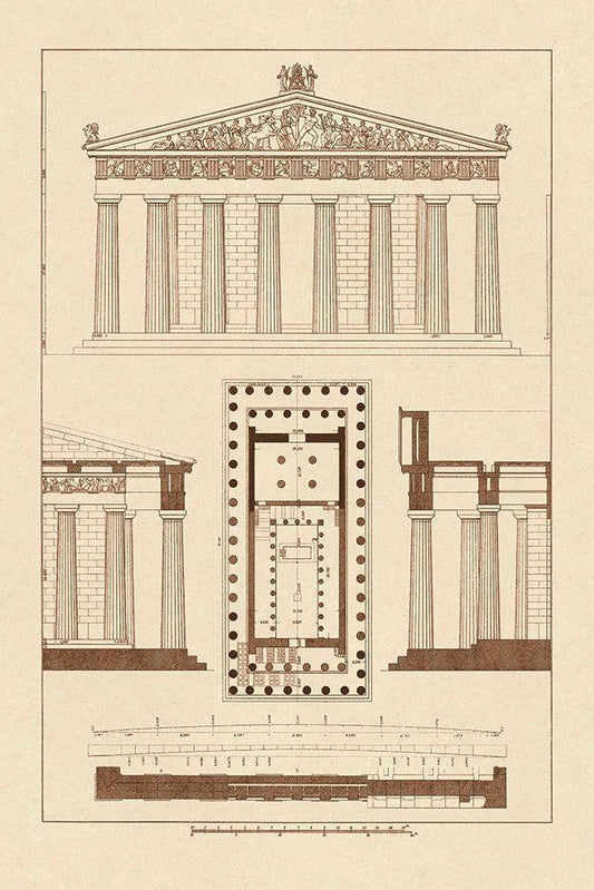 Details of the Parthenon at Athens White Modern Wood Framed Art Print with Double Matting by Buhlmann, J.