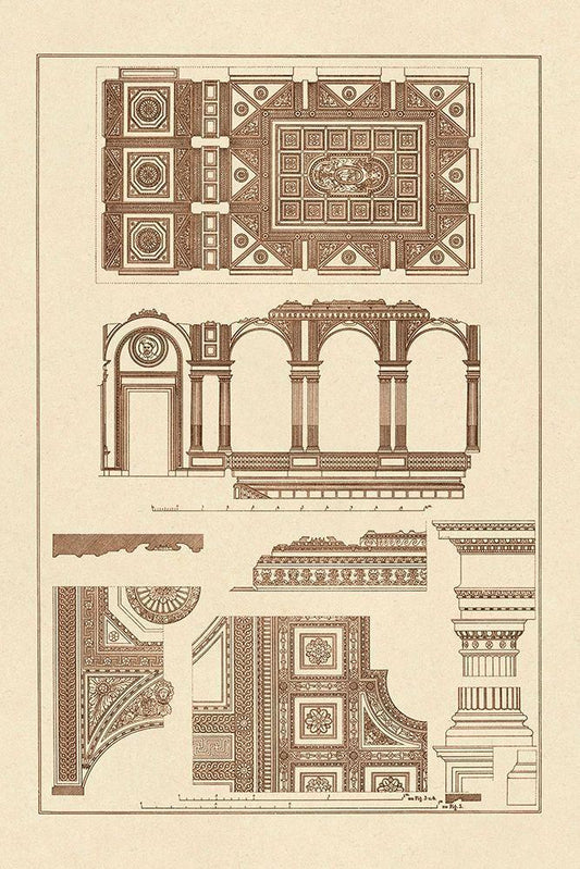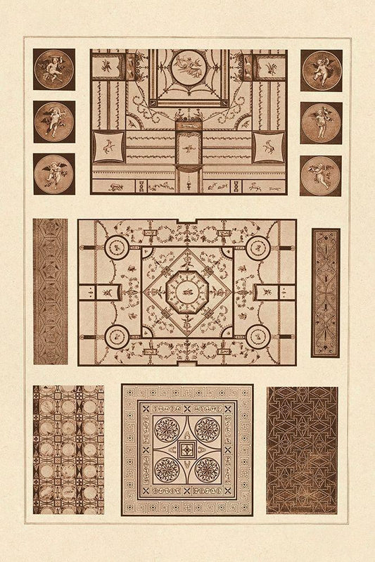 Painted Ceilings and Pavements from Pompeii White Modern Wood Framed Art Print with Double Matting by Buhlmann, J.