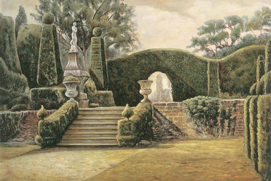 Classical Garden I White Modern Wood Framed Art Print with Double Matting by Collins, Isabelle