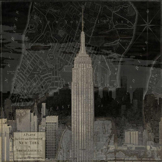 Vintage New York in Black II White Modern Wood Framed Art Print with Double Matting by Matthews, Dylan