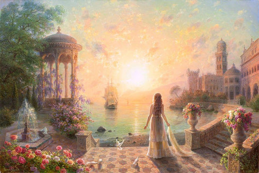 Swallows Nest.Morning – 2 White Modern Wood Framed Art Print with Double Matting by Goryachev, Alexander