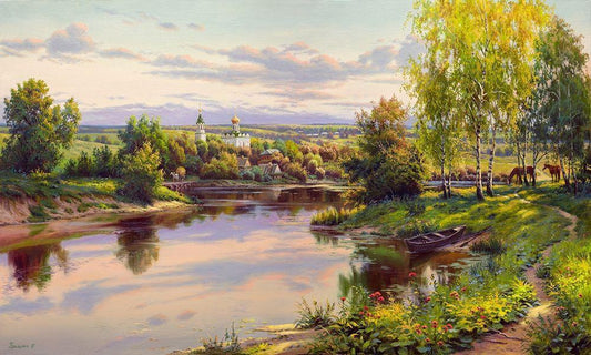 In the vicinity of Suzdal White Modern Wood Framed Art Print with Double Matting by Milyukov, Alexey