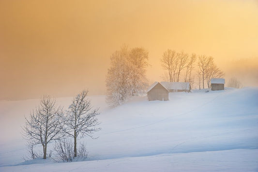 Winter Hut Black Ornate Wood Framed Art Print with Double Matting by Nienartowicz, Karol