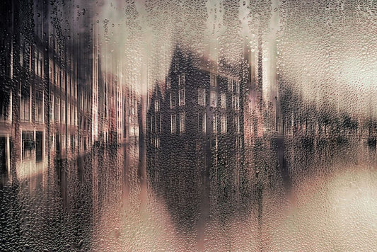 Amsterdam In The Rain Black Ornate Wood Framed Art Print with Double Matting by aRRO