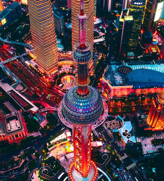 Oriental Pearl Tower Black Ornate Wood Framed Art Print with Double Matting by Chiriaco, Carmine