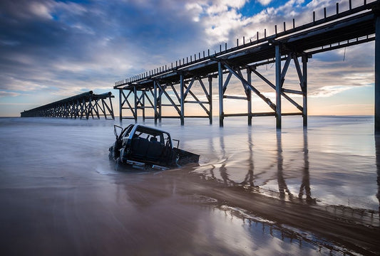 Autumn Pier Black Ornate Wood Framed Art Print with Double Matting by Keller