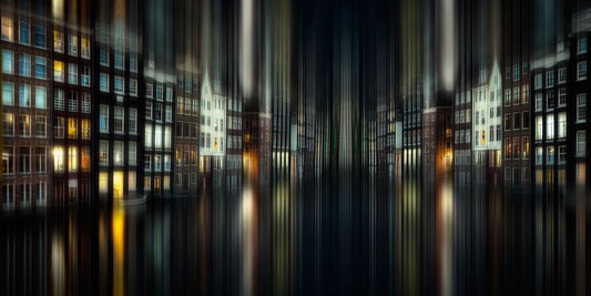 Amsterdam By Night Black Ornate Wood Framed Art Print with Double Matting by aRRO