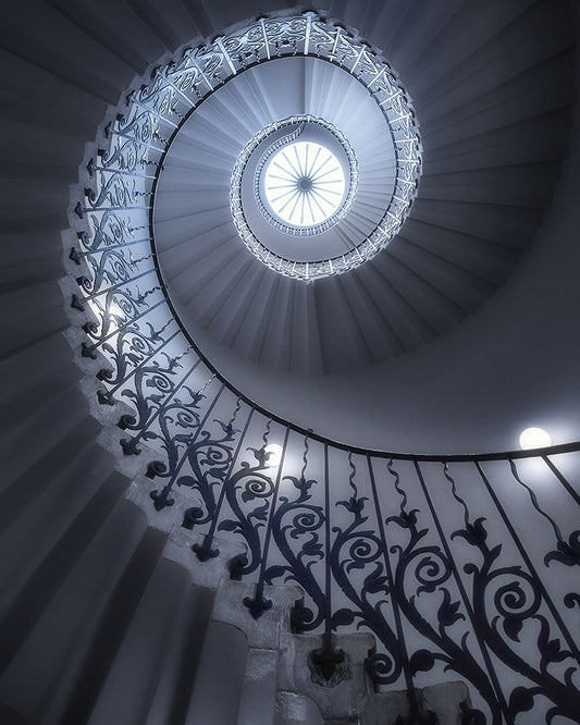 Tulip Stairs Black Ornate Wood Framed Art Print with Double Matting by Cuomo, Massimo