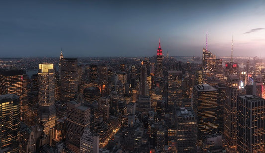 New York Skyline Black Ornate Wood Framed Art Print with Double Matting by Angel Martin, Miguel