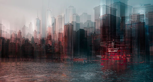 Lower Manhattan At Dusk Black Ornate Wood Framed Art Print with Double Matting by Dai, Wei