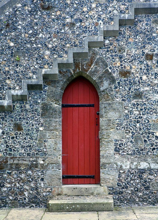 Red Door Under the Stairs White Modern Wood Framed Art Print with Double Matting by Anonymous