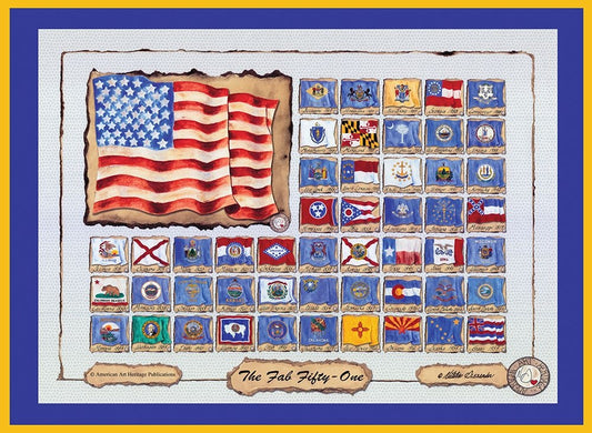 Fab 51 States White Modern Wood Framed Art Print with Double Matting by Alexander, Natalie