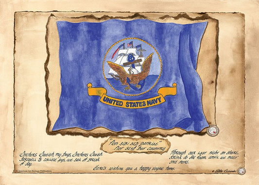 Navy Flag USA White Modern Wood Framed Art Print with Double Matting by Alexander, Natalie