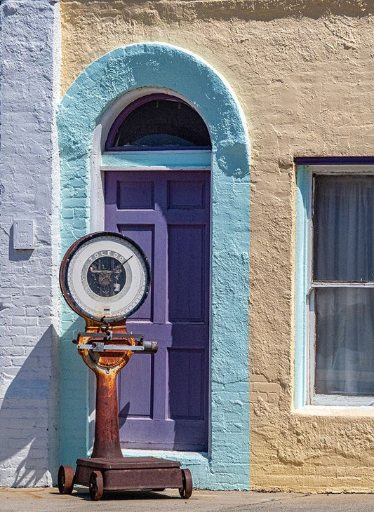 USA-Washington State-Pomeroy Colorful old building with arched windows and doorway with scale Black Ornate Wood Framed Art Print with Double Matting by Gulin, Sylvia