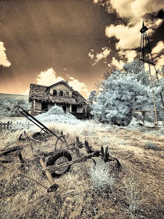 USA-Washington State-Palouse Infrared of old homestead with special clouds Black Ornate Wood Framed Art Print with Double Matting by Eggers, Terry