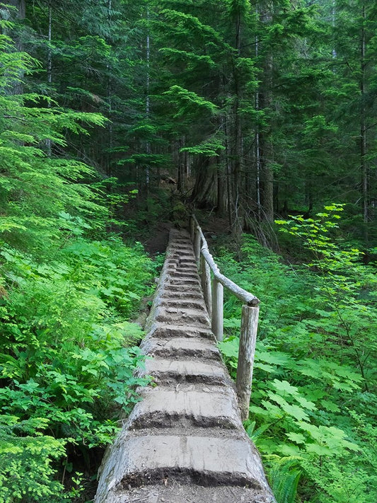 Washington State-Central Cascades-Old Fir tree bridge-on trail to Annette Lake Black Ornate Wood Framed Art Print with Double Matting by Wild, Jamie and Judy