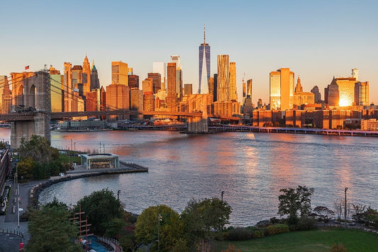 Manhattan-New York-USA Sunrise view of Manhattan and the Brooklyn Bridge Black Ornate Wood Framed Art Print with Double Matting by Wilson, Emily M.