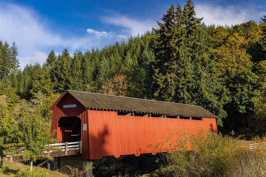 Chitwood Covered Bridge in autumn in Lincoln County-Oregon-USA Black Ornate Wood Framed Art Print with Double Matting by Haney, Chuck