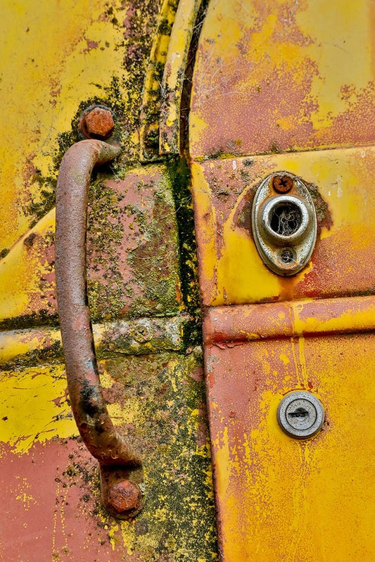 USA- Oregon- Tillamook. Close-up of old and rusted truck door handle Black Ornate Wood Framed Art Print with Double Matting by Gulin, Darrell