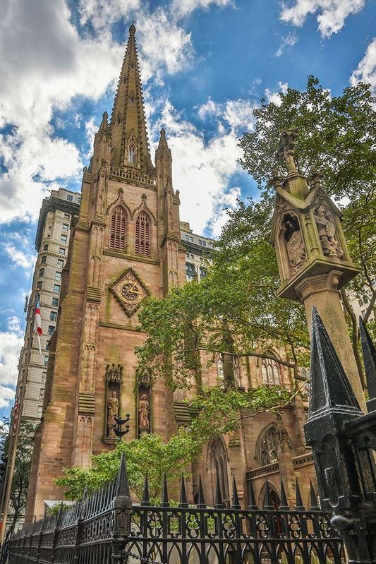 USA-New York Trinity Church and grounds Black Ornate Wood Framed Art Print with Double Matting by Looney, Hollice