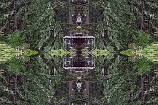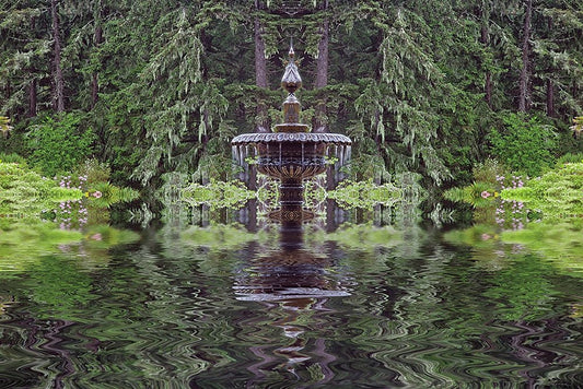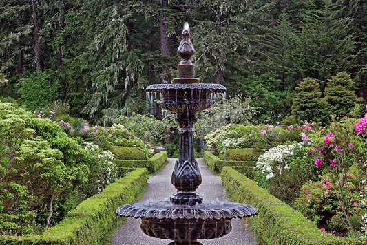 Fountain and in rhododendron garden-Shore Acres State Park-Coos Bay-Oregon Black Ornate Wood Framed Art Print with Double Matting by Jones, Adam