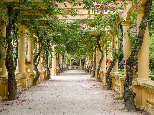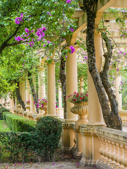 Portugal-Aveiro-Parque Dom Pedro Infante in Aveiro-Stone balustrade with pergola and columns Black Ornate Wood Framed Art Print with Double Matting by Eggers, Julie
