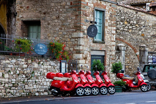 Italy-Radda in Chianti Vespa scooters for rent in the town of Radda in Chianti Black Ornate Wood Framed Art Print with Double Matting by Eggers, Julie
