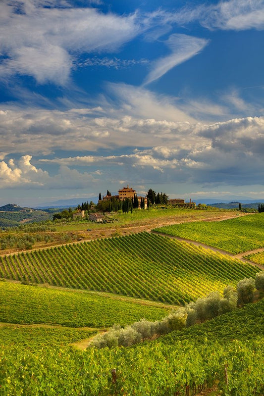 Italy-Tuscany A view of the vineyards and villa in Chianti region of Tuscany-Italy Black Ornate Wood Framed Art Print with Double Matting by Eggers, Julie