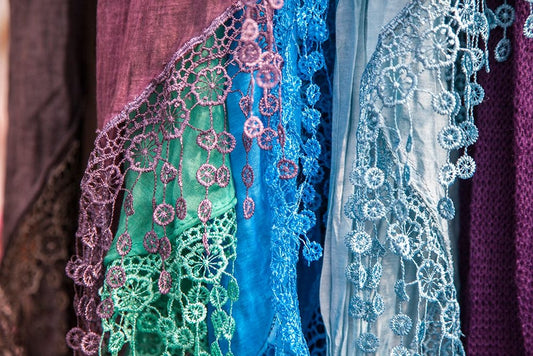Italy-Venice Colorful Venetian scarfs Black Ornate Wood Framed Art Print with Double Matting by Eggers, Julie